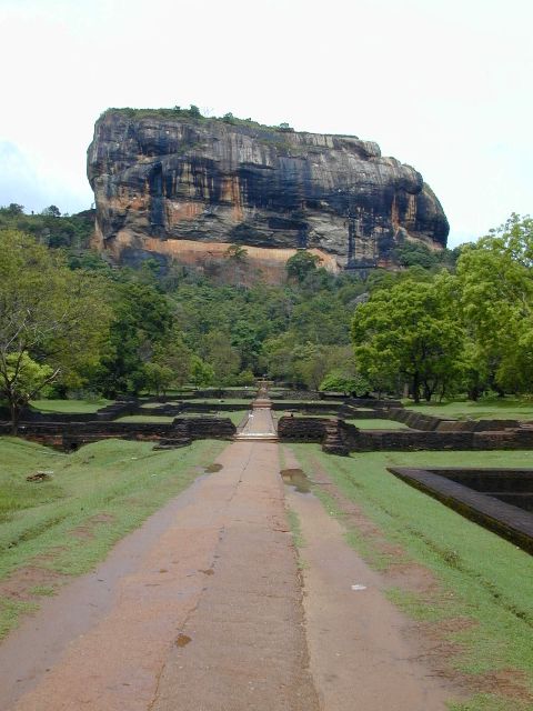 Der massive Felsen erhebt sich 200 m aus dem grünen Dschungel in den Himmel . Vor 1500 Jahren muß dieser Anblick mit dem Palast oben auf , überwältigend ausgesehen haben. Im 5. Jahrhundert und nur 18 Jahre lang , war diese Festung eines der schönsten Königsresidenzen , die die Welt je gesehen hatte . Angst , Arroganz und der Wahn , gottähnlich zu sein , erbaute der Prinz Kasyapa seinen Palast auf diesen Felsen . "Erschlagt meinen Vater" brüllte wutentbrannt der Prinz Kasyapa, und sein Vater, ( Herrscher Ceylons ), wurde bei lebendigem Leib begraben . . Klick hier fuer mehr Fotos
